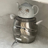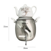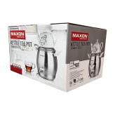 کارتن ۴ تایی کتری و قوری مکسون کف چدن، کتری استیل طرحدار 6 لیتری و قوری چینی