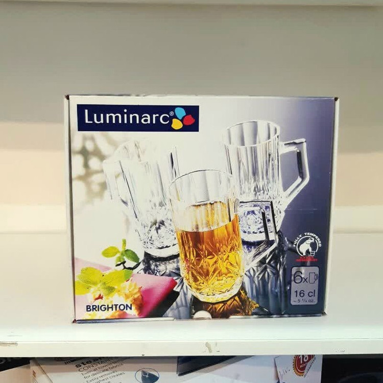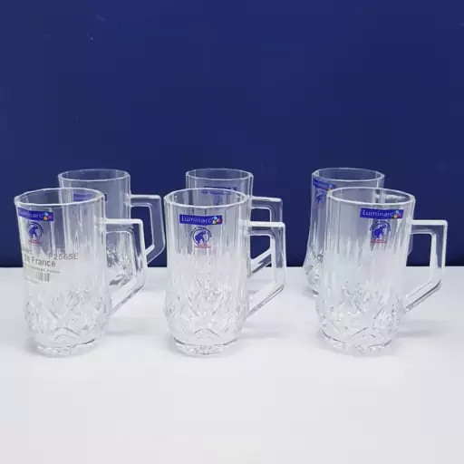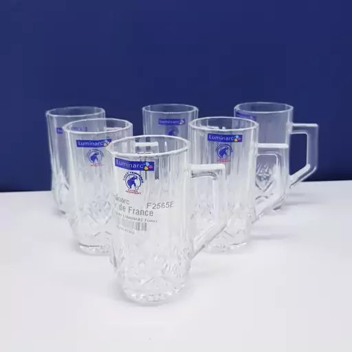 استکان لومینارک مدل برایتون حک شده اصلی دسته دار بسته 6 عددی ساخت امارات مدل گلد فرنس F2565E LUMINARC BRIGHTON