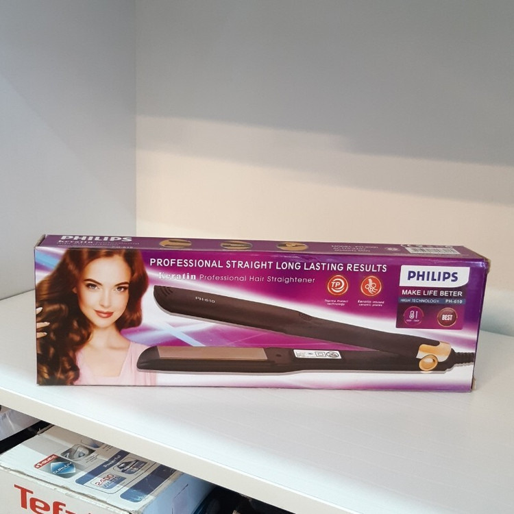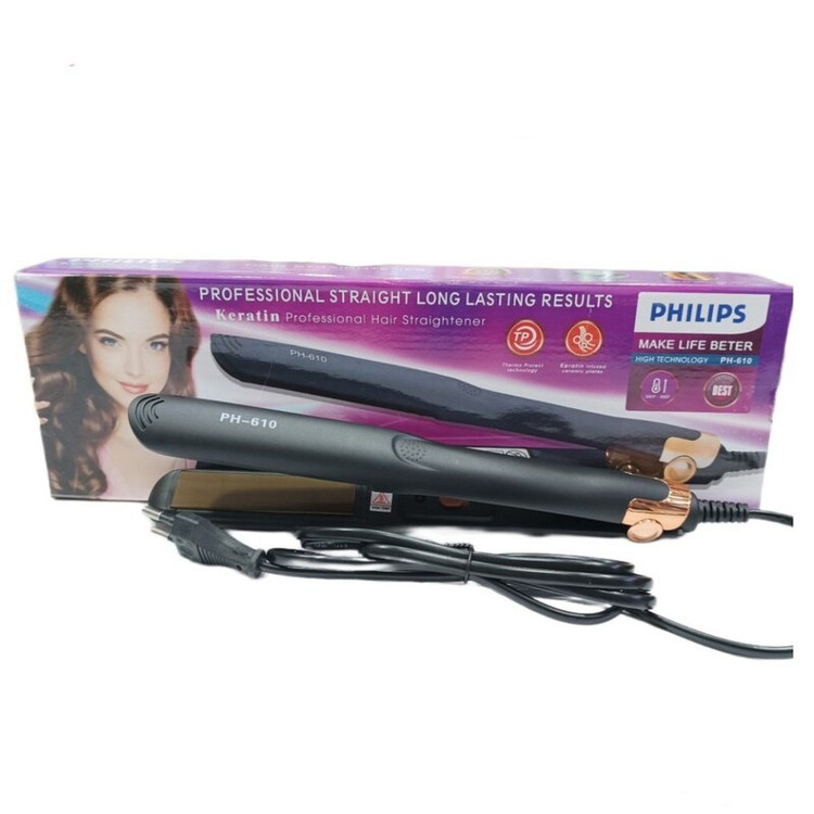 اتو مو فیلیپس مدل Ph-610 دارای صفحه سرامیکی مجهز به تکنولوژی ترمو پروتکت دکمه خاموش/روشن طول سیم ۱/۶ متر مدت زمان گرم شدن ۴۵ دقیقه
