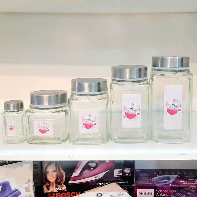 بانکه شیشه ای ، جار فانتزی سایز سه ، ۱/۵ لیتری درب پلیمری با کیفیت شیشه بادوام و شفاف ارتفاع ۱۷ سانتیمتر دهانه ۹ سانتیمتر