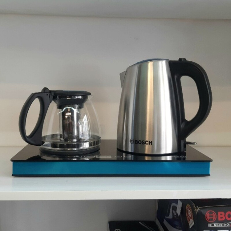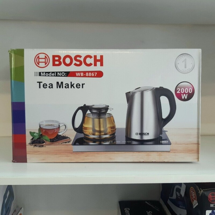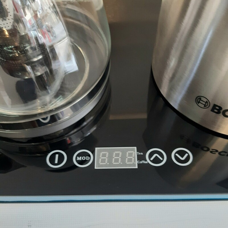 چایساز کنار همی مدل 8876 بوش صفحه دیجیتال لمسی ظرفیت کتری 1/7 لیتر ظرفیت قوری یک لیتر دارای سیستم قطع کن خودکار دارای صفحه گرم نگهدارنده جنس صفحه شیشه ای ضخیم و مقاوم قابلیت تنظیم دما