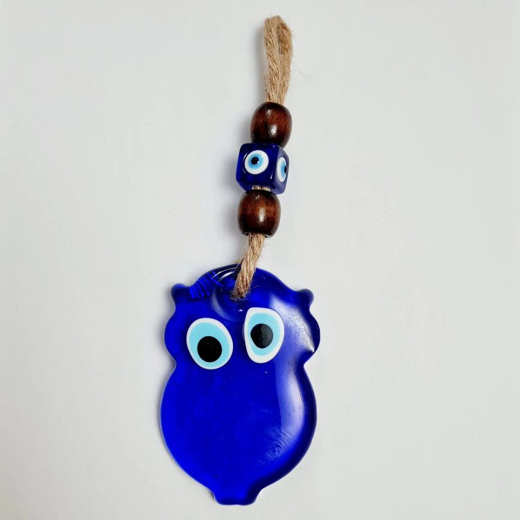 چشم نظر طرح جغد با سنگ ترکیه ای . درجع یک و زیبا دارای بافت و مهره ی چوبی