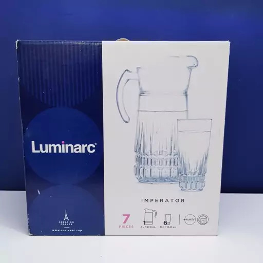 پارچ و لیوان لومینارک اصلی مدل امپراطور اصلی 7 پارچه حک شده ساخت امارات سری گلدفرنس F2565E
