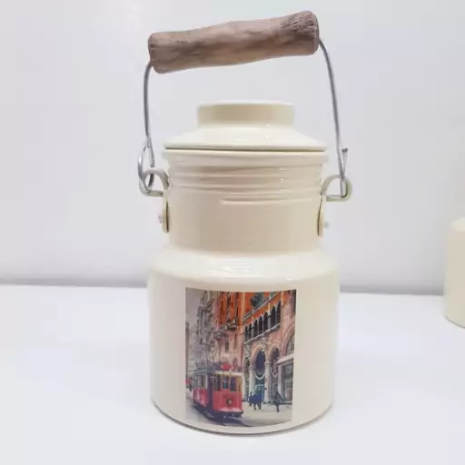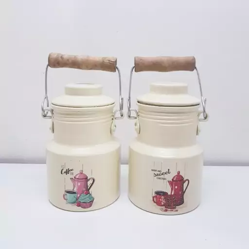 بانکه و سطل روحی شیر و روغن 400 میلی لیتر رنگ کوره دسته چوبی یکتا بوش